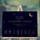 Le design présente une feuille d'or simple et élégante et des étoiles qui brillent doucement, dressées contre un arrière - plan de minuit. L'invitation utilise la typographie serif classique, qui ajoute une touche traditionnelle et formelle avec son style soigné et clair.