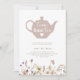 Une théière rose avec typographie "time for tea" à l'intérieur, avec des fleurs sauvages délicats peints à l'aquarelle sur le fond. Parfait pour votre fête du thé du 2e anniversaire !