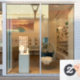 Autocollant de vitrine à heures d'ouverture complexes. Cet adhésif de fenêtre moderne pour heures d'ouverture comporte un logo personnalisé, des heures d'ouverture et des coordonnées telles que le site web ou le numéro de téléphone en blanc. Pour une installation à l'intérieur de la fenêtre ou de la vitrine. Découvrez d'autres produits professionnels faciles à personnaliser pour les entreprises de © y.BEE PAPERIE #autocollantdefenetre #autocollantdevitrine #heuresdouverturecomplexes #designautocollant #autocollantvinyle #vitrine