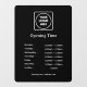 Tenir les clients informés avec cet autocollant de fenêtre personnalisé noir pour votre entreprise. Parfait pour les magasins, les restaurants, les cafés, les salons et les bureaux, ce design professionnel affiche clairement vos heures d'ouverture et le logo de votre entreprise. Facile à appliquer et à enlever, cette enseigne de fenêtre durable est un moyen simple et efficace de faire ressortir votre vitrine tout en gardant vos heures visibles.