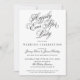Fairytale "Happily Ever After" invitations de mariage, avec de beaux fleuris typographiques. Le texte du script dit "Heureusement toujours après la fête" en encre noire, avec une étoile sur l'arrière-plan.