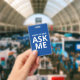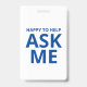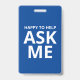 Heureux de vous aider - Demandez-moi - Badge d'identification bleu et blanc