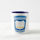 La tasse à café est ornée d'une tasse à café grecque bleue style New York classique avec "We are happy to serve you" emblazonné à l'avant. Créé à partir d'une illustration de marqueur originale.