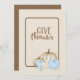 Merci de donner la carte d'invitation faire-part. Ce beau bleu de vacances, et crème citrouille heureux grâce à la carte, donne un arrangement magnifique de citrouille et bleu et de couleur rouille feuille, ajoutant une touche colorée de verdure et de feuillage. Cette collection apportera une touche de beauté à votre fête festive.