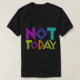 Dieses kühne T - Shirt-Design zeichnet sich durch den Ausdruck "Not Today" in einem farbenfrohen, auffälligen Display aus. (Beschreiben Sie den bestimmten Stil aus der Eingabeaufforderung, die Sie ausgewählt haben - z. B. "Der Text ist ein Graffiti-Schriftart mit einem Regenbogenfarbverlauf" oder "Jeder Buchstabe ist eine andere helle Farbe, bei der eine Sprechblase dahinter herausspringt"). Es ist eine großartige Art, eine Aussage zu machen und Ihnen gemeines Geschäft zu zeigen!