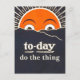 Diese Postkarte zeigt eine Reproduktion eines altmodischen Posters der Sonne, verändert mit der Phrase "Heute, mach das Ding".