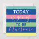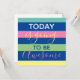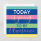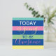 Moderner Text in weiß, gelb, blau und rosa mit gestreiftem Muster.