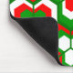 Dieses Mauspad hat ein geometrisches Weihnachtsdesign aus Sechsecken in Sets von drei, die wie Blume in Rot, Weiß und Grün aussehen.