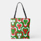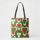 Diese Tasche hat ein Weihnachtsgeometrisches Design von Sechsecken in Sets von drei, die wie Blume in rot, weiß und grün aussehen.