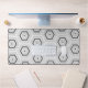 "Sechseckfliesen-Tischmatte", "Hexagon-Fliesenleder", "Penny tile Protektor Pad", "hexagonal grau und weiß", "Schwarz-Weiß", "geometrisches Musterdesign", "Vintage Retro-moderne Symmetrie", "symmetrische Formen Mosaikfliesen", "zeitgenössische, einfache Fliesen", "stilienneutrale graue Fliesen"