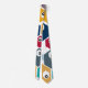 Diese Krawatte hat ein modernes Design von Hexagonen in vielen Farbtönen mit schwarz-weißen Kreisen in sich.