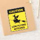 Junge fliegende Hexe reitet einen Besen. Vector Icon mit anpassbarer Farbe. Eigener Text.