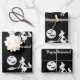 Hexe auf einem schwarzen und weißen Halloween Geschenkpapier Set