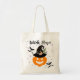Tote Tasche mit Fledermäusen, Kürbis, Hexenhut und einem Sprichwort mit der Aufschrift "Hexe, bitte!"