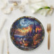 Feiern Sie Halloween mit diesen spöttischen Tellern mit Hexenkessel, Jack-Laternen, Kerzen und Fledermäusen vor dem Hintergrund einer gruseligen Fantasieburg.