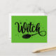 Dieses Schwarzweiß-Design enthält das Wort "Hexe" in einem fettgedruckten, fließenden Script-Schriftart, wobei sich das Schwanz-Ende des Buchstabens "h" in den Griff eines Broomsticks verwandelt. Der Text ist mit einem spielerischen, handgeschriebenen Look stilisiert und fügt dem Gesamtthema eine skurrile Touch hinzu. Um das Wort herum gibt es verstreute Sterne, die einen magischen, sternenbedeckten Effekt erzeugen, der das witzige Thema verstärkt. Der diagonal unter dem Text positionierte Broomstick fügt dem Design ein dynamisches Element hinzu, das Bewegung anregt und Tiefe hinzufügt.