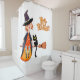 Hexe und Schwarze Katze glücklich Halloween Duschvorhang