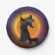 Hexe und schwarze Katze mit Orange Moon Pappteller