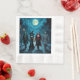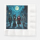 Papierservietten aus Halloween-Party mit ai-Art, die eine Hexe, einen Vampir, eine Mumie und einen Zombie darstellen, die durch Halloween-Abend mit Vollmond im coolen Comic-Stil spazieren.