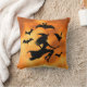Rotzunge und Fledermäuse Silhouetten gegen einen gelben und orangen Mond.