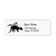 Ein Eichhörnchen, das eine schwarze Hexe trägt, fährt auf einer schwarzen Katze und trägt ein Schwert auf diesen lustigen Halloween-Rücksendeadressen-Aufklebern.