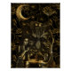 Schauen Sie sich diese gotische Hexe- und Hexenkomposition an - goldene Elemente auf schwarzem Hintergrund mit Lotus-Blume.