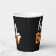 Moderne und niedliche Halloween-Party-Tassen aus Papier mit orangefarbenen und weißen Schriftzeichen mit einem kleinen Geisterakzent.