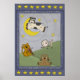Hey Diddle Diddle Comptine affiche de pépinière, mignonne et amusante, idéale pour la chambre de votre bébé, avec une vache sautant par-dessus la lune, un chat et un violon, le chien qui rit, et l'assiette et la cuillère ainsi que de nombreuses étoiles dans un ciel bleu foncé !