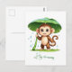 A cute and cheerful baby monkey standing on two legs, holding a big green leaf like an umbrella to stay dry in the rain. This adorable cartoon design captures playful innocence, rainy-day vibes, and nature-inspired charm. Perfect for animal lovers, cute illustration fans, kids, and anyone who enjoys cozy rainy moments.
