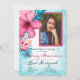 Célébrez votre bat mitzvah à thème tropical avec une fleur d'hibiscus rose, gingembre tropical, fleur de gumdrop rose, feuilles de palmiers turquoise de l'île, et un cadre photo de parties scintillant rose. Bel ensemble de design de pétales de fleurs est complet avec des cartes de boîtier rsvp coordonnées, cartes de remerciement, et accessoires de mailing. Cette carte est polyvalente pour les invitations à des mariages tropicaux ou des fêtes de 16 ans sucrées.