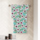Un motif de fleurs blanches d'hibiscus aux centres roses et magenta lumineux. Ils sont entourés de feuilles verts frais et placés sur un arrière - plan bleu ciel. Ce jardin tropical fleuri est parfait pour le printemps et l'été !