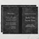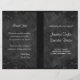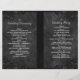 © Sunny Mars Designs - Blumenblume Hibiskus: Bi-Fold Hochzeitsprogramme Schwarz auf Chalkboard - Stilvolle, moderne, elegante, klassische, trendige, schicke, maßgeschneiderte Gothic Hochzeitsbroschüre mit schönem, prächtigem Gothschwarz Wirblen tropischen Hibiskus-Design auf schwarzem Chalkboard-Hintergrund.