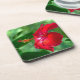 In diesem atemberaubenden Bild wird eine Blume des roten Hibiskus vor einem grün motbelten Hintergrund hervorgehoben.