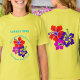Hibiskus Blume Kunstwerk Familie Wiedersehen T - Shirt für Kinder oder Erwachsene. Ein helles und feines Hibiskus-Design in Rot, Rosa und lila ist auf der Vorder- und Rückseite dieses hellgelben, kurz Ärmeltee aufgedruckt. Aqua Blue Text kann an drei Stellen auf der Vorderseite angepasst werden. Geben Sie den Familiennamen, das Datum und den Veranstaltungsort ein. Das Design wird auf andere Stile, Größen und Farben übertragen, für alle Mitglieder der Familie.