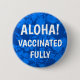 Ozeanblau Senden Sie die Aloha-Nachricht mit unserem "Impfstoff voll"-Button.Diese Vintage Not leidende Hibiskus Blume aloha Shirt Druck wurde von traditionellen Pareaus getragen für die Hula inspiriert.