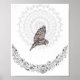 Une chouette grise gracieuse traverse un paysage hivernal, avec une lune de mandala qui brille derrière elle. Parfait pour les amateurs de chouettes, les amateurs d'oiseaux et tous ceux qui trouvent le sacré dans la nature. Toile acrylique et encre de Deerhawk.