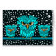 Cartes de voeux de hiboux de turquoise, timbres-poste et cadeaux mignons, fâchés et affamés pour des amants de hibou, des ornithologistes, des amants d'oiseau et des birders. Hibou de maman avec deux hiboux de bébé avec l'arrière - plan de nuit étoilée. Cadeaux uniques, colorés et frais de hibou pour des anniversaires, Noël ou toute occasion. Cette conception de hibou est disponible dans différentes couleurs de thre !