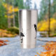 A bold-lined terrier hides its nose with a playful grin beneath the paw. Crisp contrast turns coffee time into a story. Ideal for morning routines or thoughtful gifts with wit.