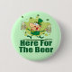 Dieses lustigen St Patrick Tagesausrüstungsbeschreibungen, die ein kleiner Kobold im grünen Betrieb mit einem halben Liter grünem Bier in jeder Hand und im Titel "hier für das Bier" im Großen grünen Text kleidete.