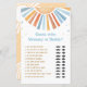 Mit unseren Sunshine Baby Shower Game Cards verschönern Sie Ihre Babydusche mit einer zusätzlichen Dosis Spaß! Diese Karten sind perfekt geeignet, um unvergessliche Momente zu schaffen. Teilen Sie die Freude, Ihre Kleine mit Freunden und Familie zu empfangen! BS642