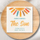 Diese Babydusche ist mit einer farbenfrohen Sonne und einer stilvollen Typografie auf cremefarbenem Hintergrund dekoriert. Der Text ist anpassbar. Original Wasserfarbe © Michele Davies.