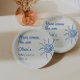 Wie Sie sehen, dieser einzigartige und elegante Sommer kommt hier die Sonne duschen Papierplatte hat eine gut konzipierte Vorlage. Mit blauer Hand gezeichneter Sonnenhandname und Datum in blau. Und cremefarbener Hintergrund. Sie können sich einfach anpassen, indem Sie die Taste "Personalisieren" drücken.