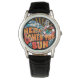 Uhr, Vintage Männeruhr mit schwarzem Lederarmband