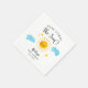 Niedliche Baby-Duschpapier-Serviette zum Thema Sonnenschein mit Aquarellbild einer lächelnden Sonne mit Wolken und Sternen. Im Text steht: "Hier kommt die Sonne." Geschlechterneutrales Design.