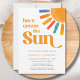 Freuen Sie sich auf eine sonnengefleckte Babydusche mit der niedlichen Sonnenschein-Babydusche. Es zeigt den Text "Here Comes The Sun" in stilvoller Typografie mit einer farbenfrohen Wasserfarbensonne. Ideal für eine geschlechtsneutrale Babydusche. Die Rückseite ist mit einer Sonne dekoriert. Einfach anpassbar. Original Wasserfarbe © Michele Davies.