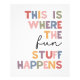 Hier finden die lustigen Dinge statt Print, inspirierende Spielzimmer druckbare Kunst, Klassenzimmer Dekoration, Kinder Raum Wand Art