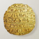 Un coussin rond jaune avec des hiéroglyphes anciens gravés sur pierre. Idéal pour la décoration à la maison ou à l'Halloween. Aussi disponible sous d'autres formes !