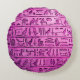 Un coussin rond violet avec des hiéroglyphes anciens gravés sur pierre. Idéal pour la décoration Halloween. Aussi disponible sous d'autres formes !