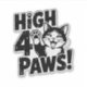 This clean vector-style design features a cool cat with a raised paw, perfectly placed in the middle of the phrase “High 4 Paws!” — as if it’s offering a very selective high five.