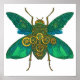 A striking, high-contrast graphic of the ornate clockwork insect, rendered in flat blocks of pure, vibrant color (Emerald Green and Brass Yellow). This bold design uses color saturation and simple shapes for a powerful, modern Pop Art aesthetic.